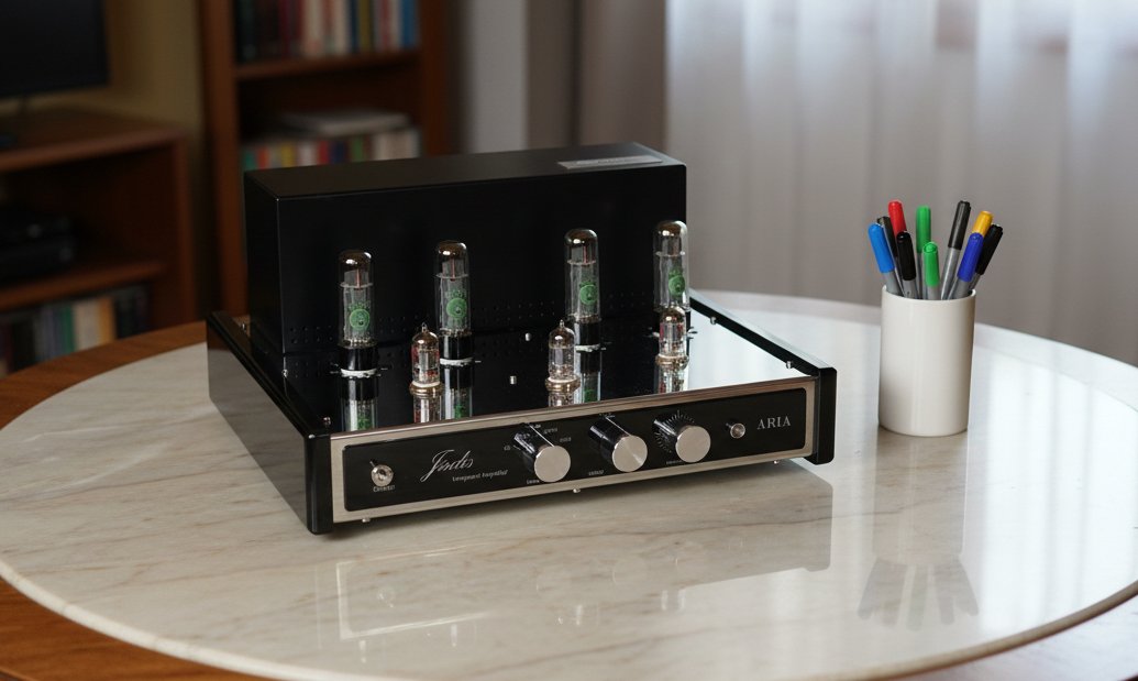 Con 35 W por canal basados en 4 válvulas EL34, acompañadas de 2 ECC83/12AX7 y 1 ECC82/12AU7, el Aria ofrece una entrega sonora que va mucho más allá de los números. La potencia es más que suficiente para mover una gran variedad de altavoces, pero lo verdaderamente destacable es la manera en que entrega la música: