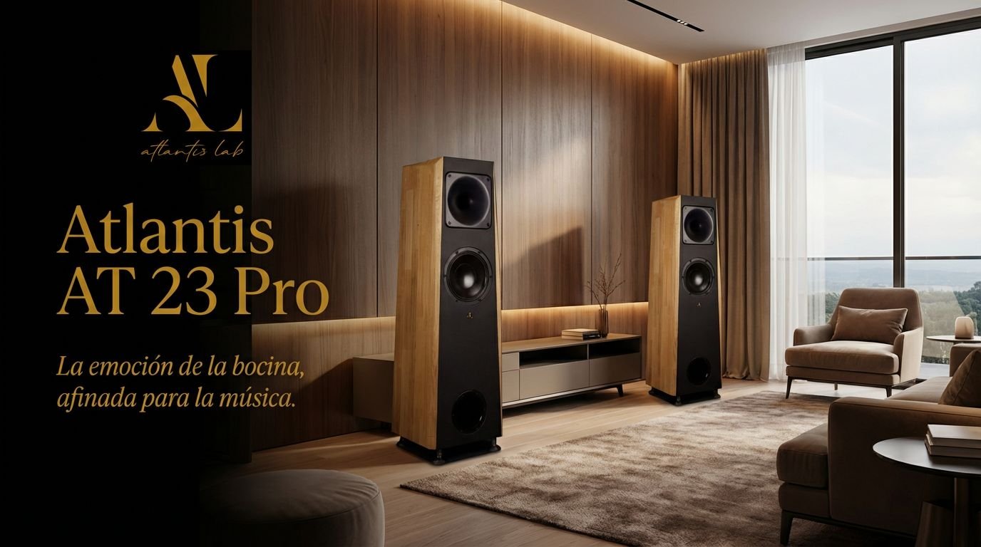 El Atlantis Lab AT23 Pro es el modelo más equilibrado y accesible de la serie Pro, concebido para quienes buscan dinámica real, claridad y rapidez, pero en un formato más compacto y fácil de integrar en salas domésticas normales.