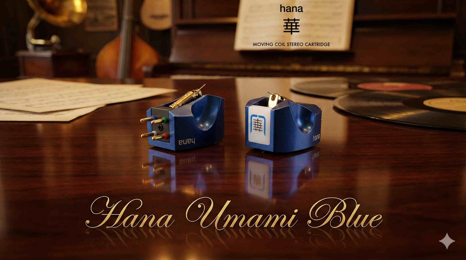 El cartucho de bobina móvil de gama alta HANA-Umami Blue combina materiales brillantes y técnicas japonesas clásicas con ingeniería de audio moderna.