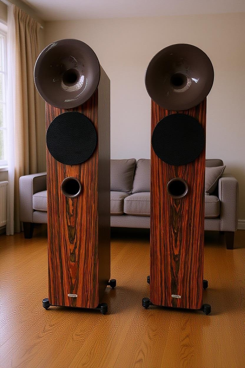 El hORNS Aria III Mk2 representa la evolución más refinada del diseño acústico de la firma polaca. Esta imponente caja de suelo combina proporciones estilizadas con un acabado de lujo y una construcción extremadamente sólida. Su presencia no pasa desapercibida: lateral curvado, bocina frontal de aluminio, materiales nobles y posibilidad de elegir entre 20 acabados exclusivos en madera o lacado RAL.