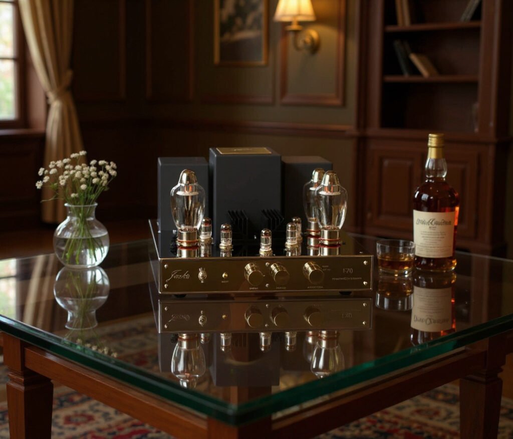 Este integrado no solo está diseñado en la pura tradición con cableado punto a punto y transformador hecho a mano es el primero en integrar varias características de la tecnología monobloque de Jadis.