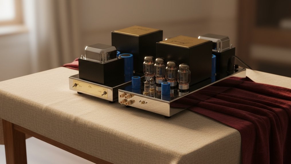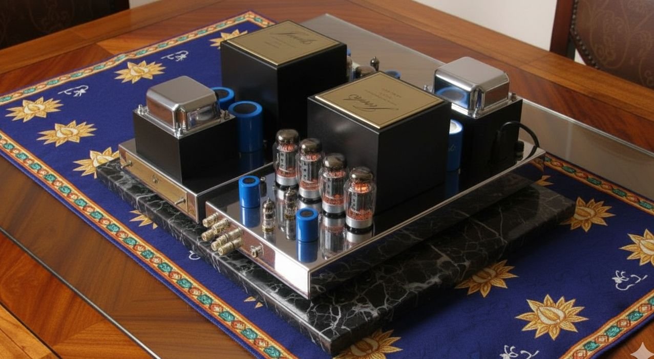 Los transformadores, sobredimensionados y silenciosos, trabajan siempre holgados, disipando calor y vibraciones con una serenidad que se nota en la escucha. El filtrado de los altos voltajes se confía a condensadores de alta capacidad, y las válvulas se alimentan en corriente alterna, logrando un equilibrio y una limpieza que sorprenden en un diseño tan clásico.