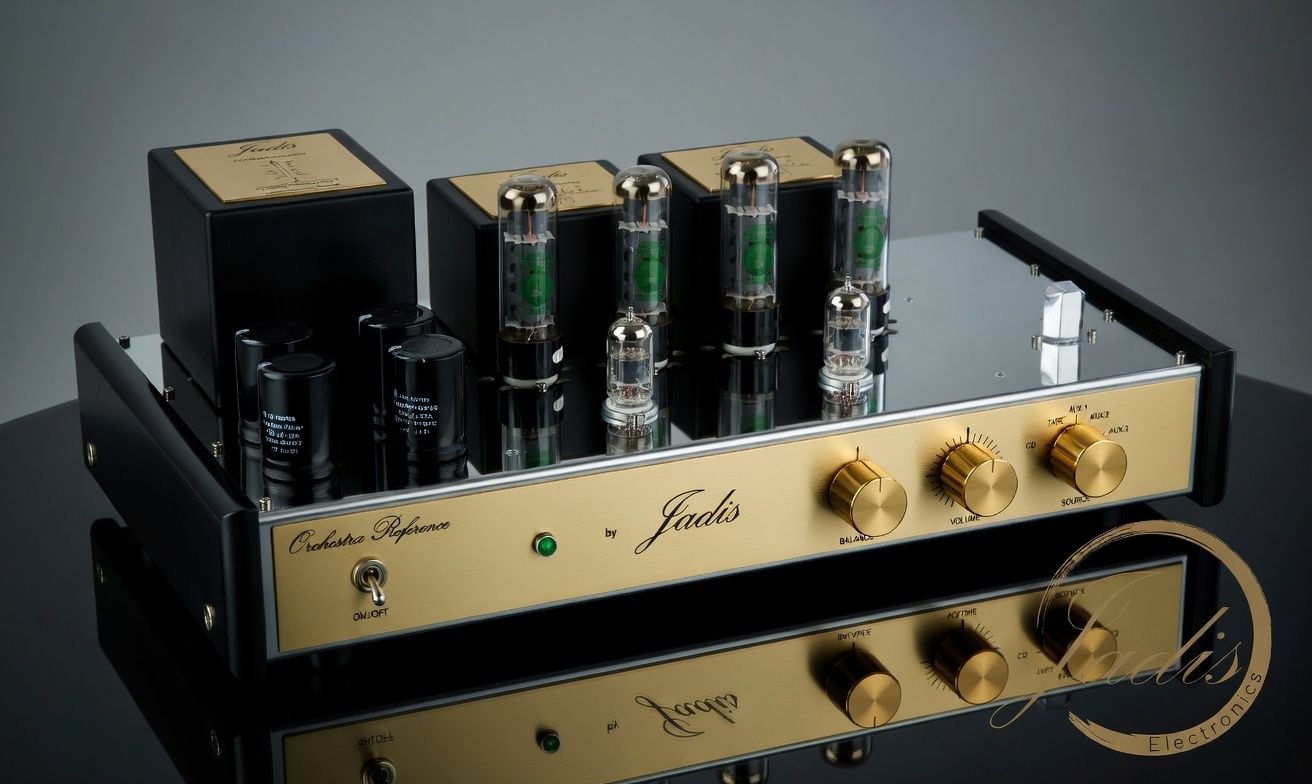 El Orchestra Reference tiene un marco de acero inoxidable no magnético y paneles laterales de madera, los tubos están montados sobre soportes de cerámica con conectores dorados. Funciona con diferentes tubos de potencia trabajando en Push / Pull y accionados por dos ECC83.