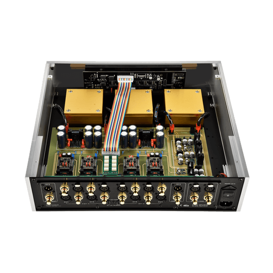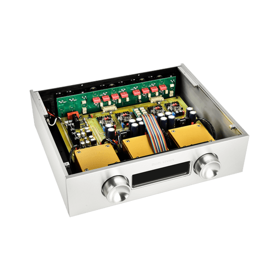 Concebido como un auténtico diseño dual mono, el EX-P27 separa completamente los canales izquierdo y derecho desde la entrada hasta la salida, alojando su electrónica en dos chasis independientes: uno dedicado a la fuente de alimentación y otro al circuito de audio. Esta disposición elimina cualquier posible contaminación eléctrica y garantiza un nivel de silencio negro que solo los mejores preamplificadores del mundo pueden alcanzar.