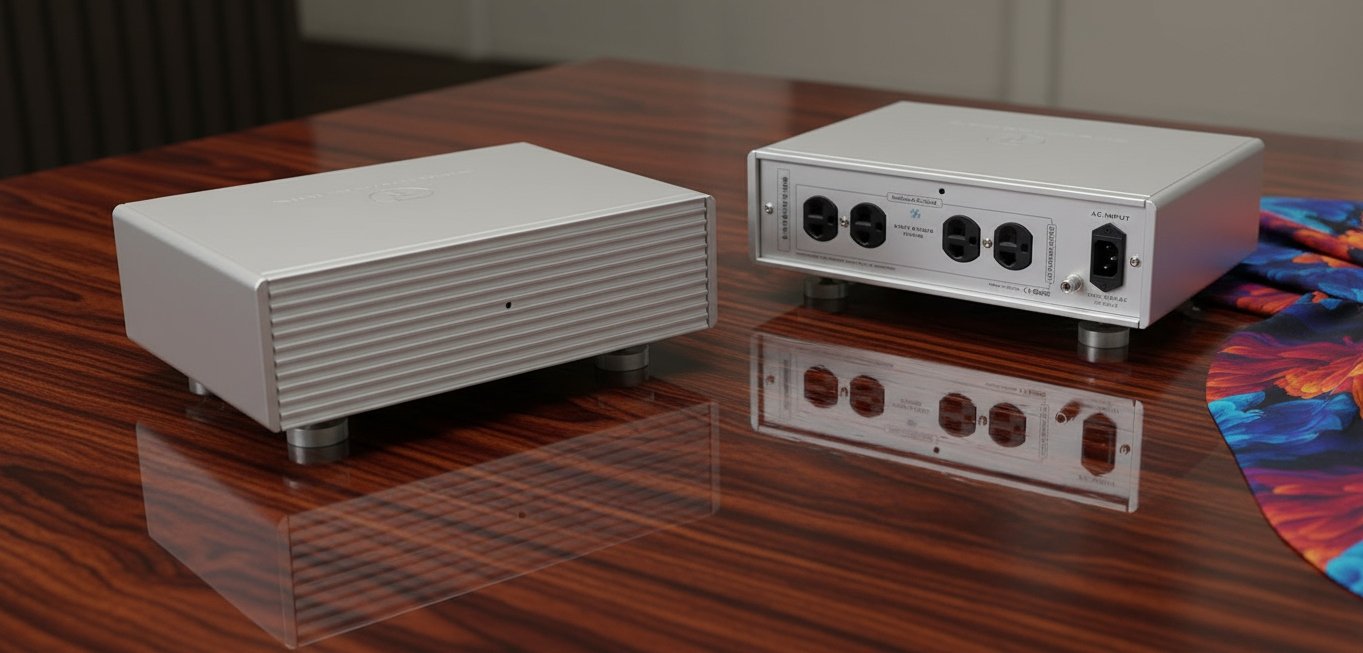 Su chasis íntegro de aleación de titanio y aluminio grado aeroespacial, con acabado anodizado en gris hierro, transmite solidez y refinamiento. Cada unidad incorpora dos grupos de cuatro salidas AC independientes, capaces de suministrar hasta 30 amperios por grupo, con recomendaciones específicas para separar equipos digitales y analógicos y evitar interferencias cruzadas.